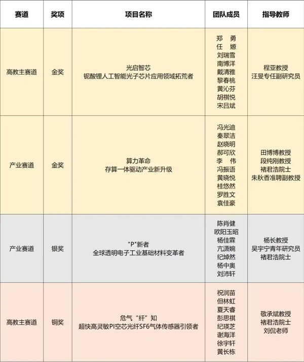 我院学子凭借扎实的专业功底、突出的创新能力与高效的团队协作,从众多参赛队伍中脱颖而出,最终“光启智芯”项目荣获高教主赛道研究生创意组金奖、“算力革命”项目荣获产业赛道成果转化组金奖、“‘P’新者”项目荣获产业赛道产教协同创新组银奖、“危气‘纤’知”项目荣获高教主赛道本科生创意组铜奖。